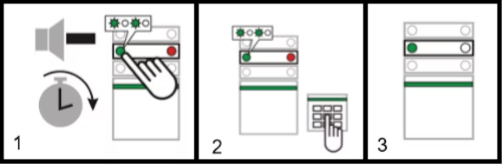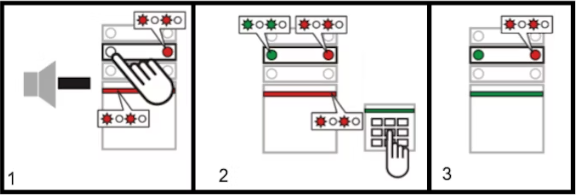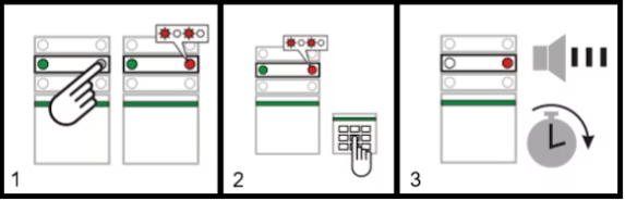3. Gentag punkt 1 og 2 for at kvittere for alarmen og den røde knap stopper nu med at blinke (Den røde knap må aldrig blinke, da dette indikerer at der er en fejl).