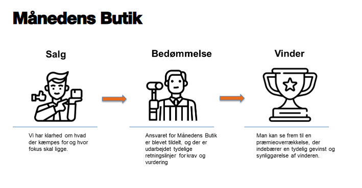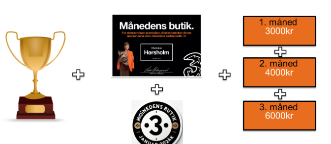 Månedens butik (Enkelt måned): Butikken, der er kåret som månedens butik, vil modtage en præmie på 3000kr. til deres butikskonto i den pågældende måned.