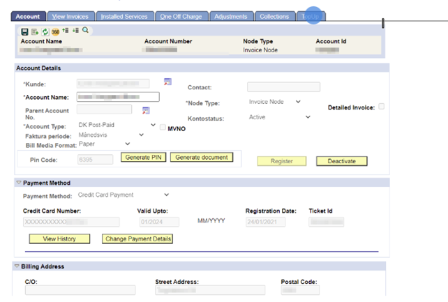2. Klik på kundenummeret, som nummeret ligger under – og efterfølgende klik på ’Account’
