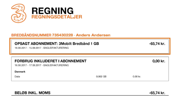 Kundens sidste regning Har kunden valgt at opsige sit kundeforhold hos os, vil den sidste regning indeholde betaling af abonnement(er) frem til opsigelsesdato.